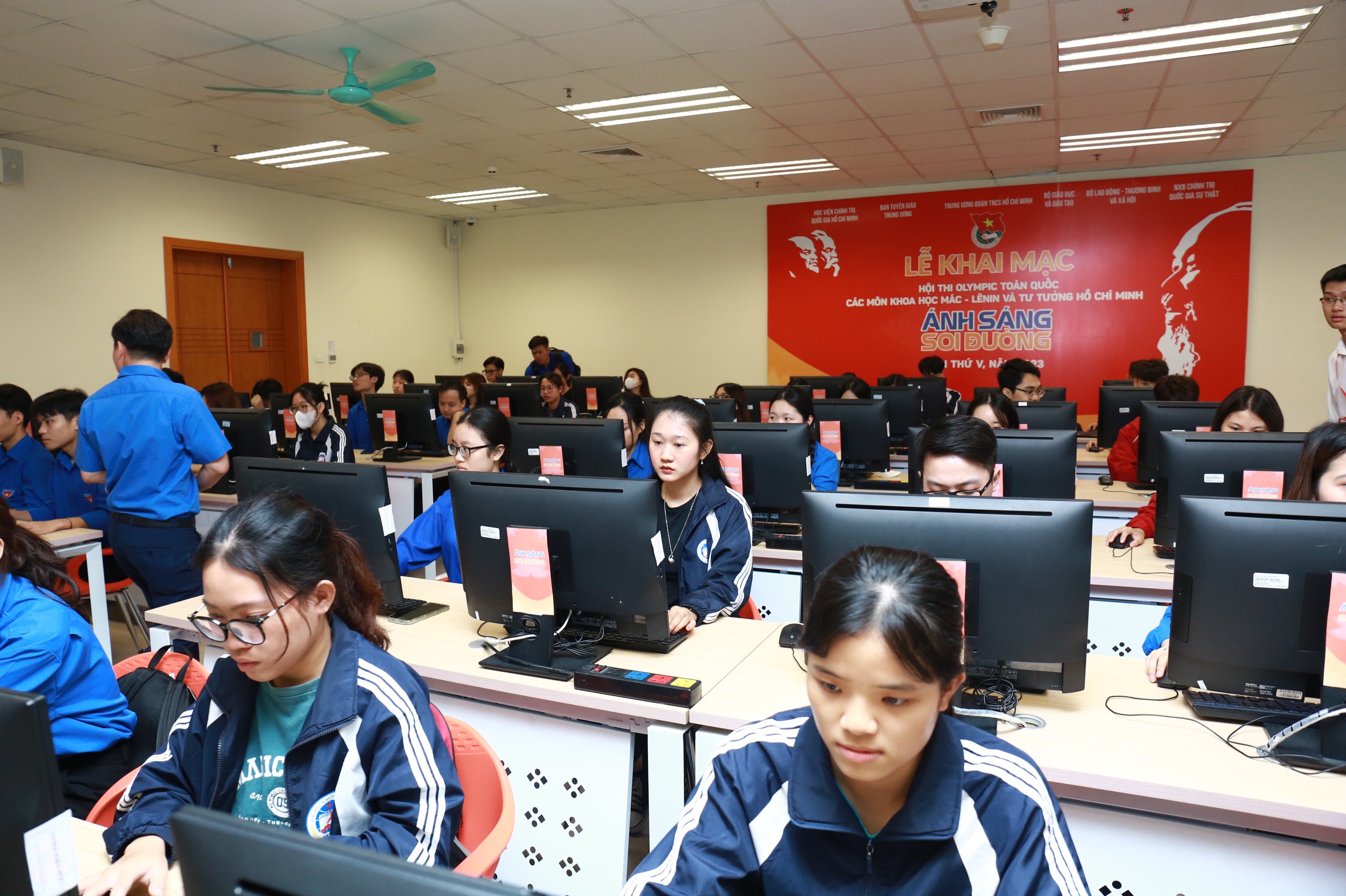 Các bạn sinh viên tham gia vòng thực trắc nghiệm trực tuyến cá nhân hưởng ứng Hội thi ngay sau lễ khai mạc