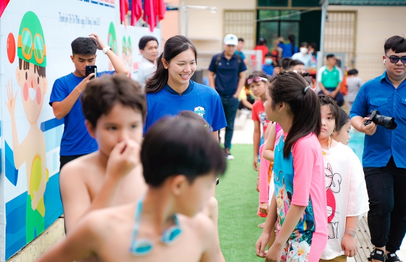 Với sự hướng dẫn tập bơi của Cựu vận động viên đội tuyển bơi lội Việt Nam Nguyễn Thị Ánh Viên, các em thiếu nhi đã được hướng dẫn, hỗ trợ tập kỹ thuật bơi cơ bản, kỹ năng làm quen với nước. Thông qua đó, giúp các em an toàn hơn khi tiếp xúc với môi trường nước trong mùa Hè năm nay.
