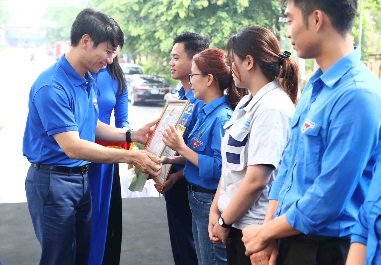 Đồng chí Phạm Tất Thắng, Uỷ viên Trung ương Đảng, Phó trưởng Ban thường trực Ban Dân vận Trung ương; đồng chí Nguyễn Ngọc Lương, Bí thư thường trực Trung ương Đoàn, Chủ tịch Hội LHTN trao bằng khen cho 20 công nhân tiêu biểu.