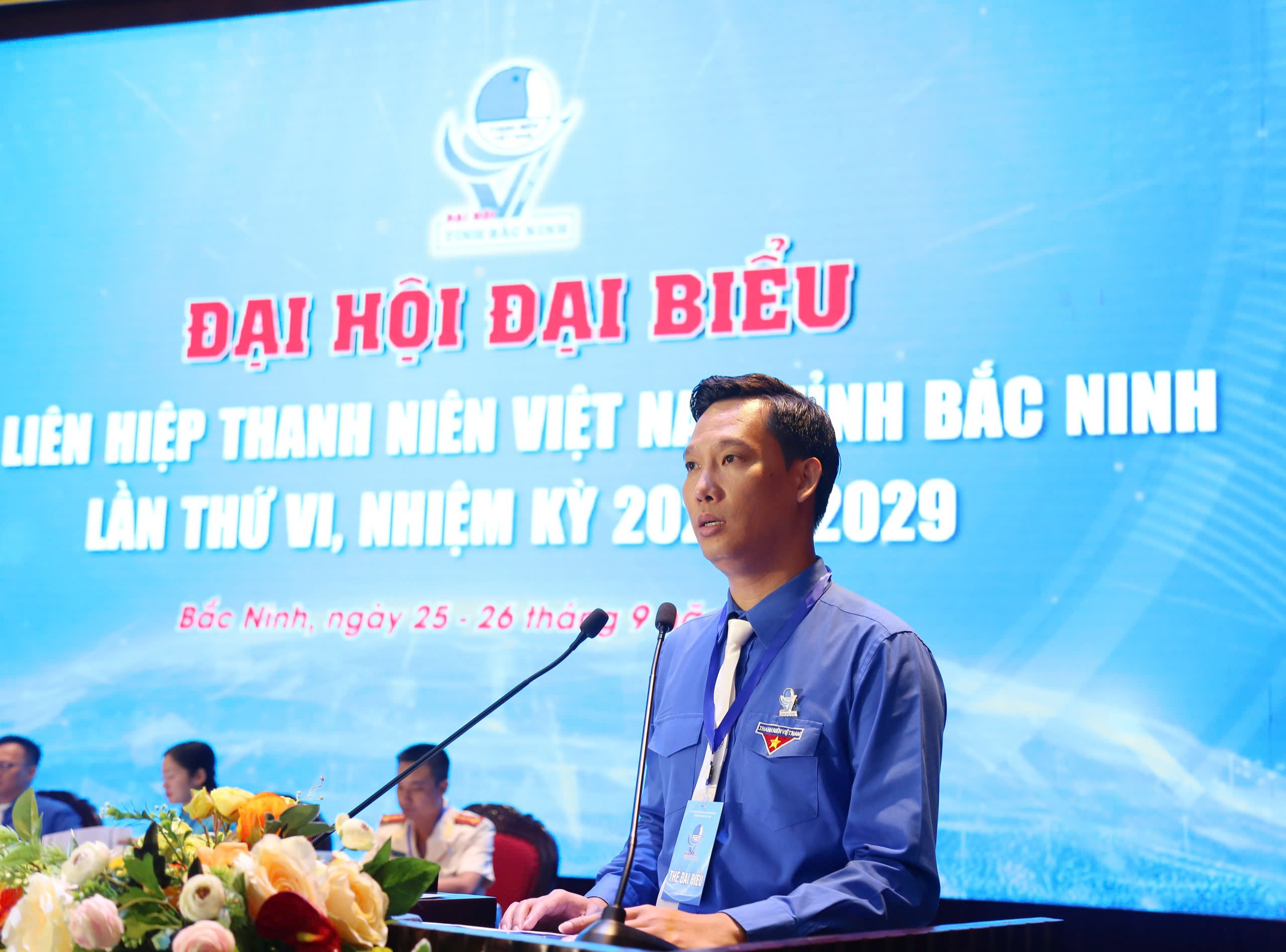 Anh Nguyễn Bảo Đại, Phó Bí thư Tỉnh đoàn, Chủ tịch Hội LHTN Việt Nam tỉnh Bắc Ninh phát biểu tại phiên khai mạc