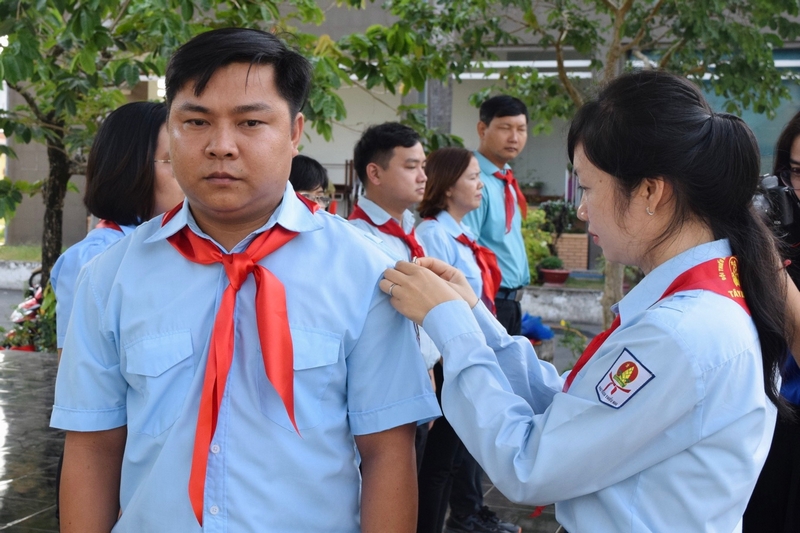 Đồng chí Trịnh Thị Như Trang – Phó Bí thư Tỉnh đoàn, Chủ tịch Hội đồng Đội tỉnh thực hiện trao cấp hiệu