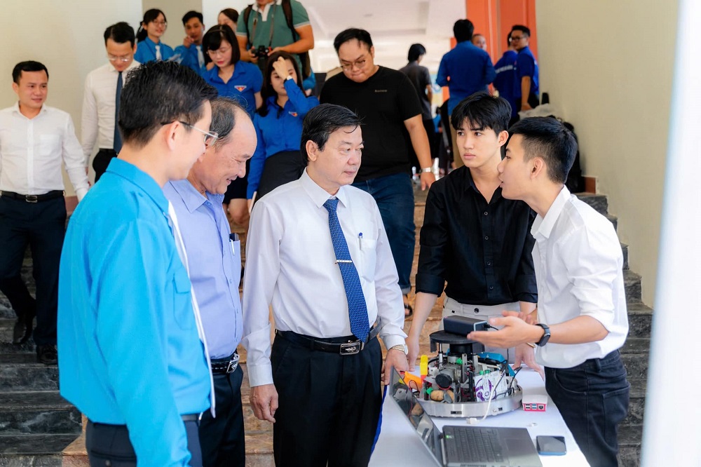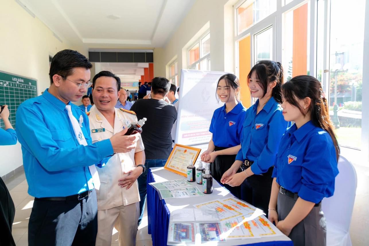 Các đại biểu tham quan các gian hàng triển lãm sản phẩm sáng tạo, triển lãm sản phẩm khởi nghiệp và triển lãm sản phẩm OCOP tiêu biểu của thanh niên, sinh viên Đà Nẵng.