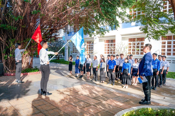Lễ chào cờ tại mô hình Cột mốc Trường Sa tại Trường Cao đẳng Du lịch Nha Trang