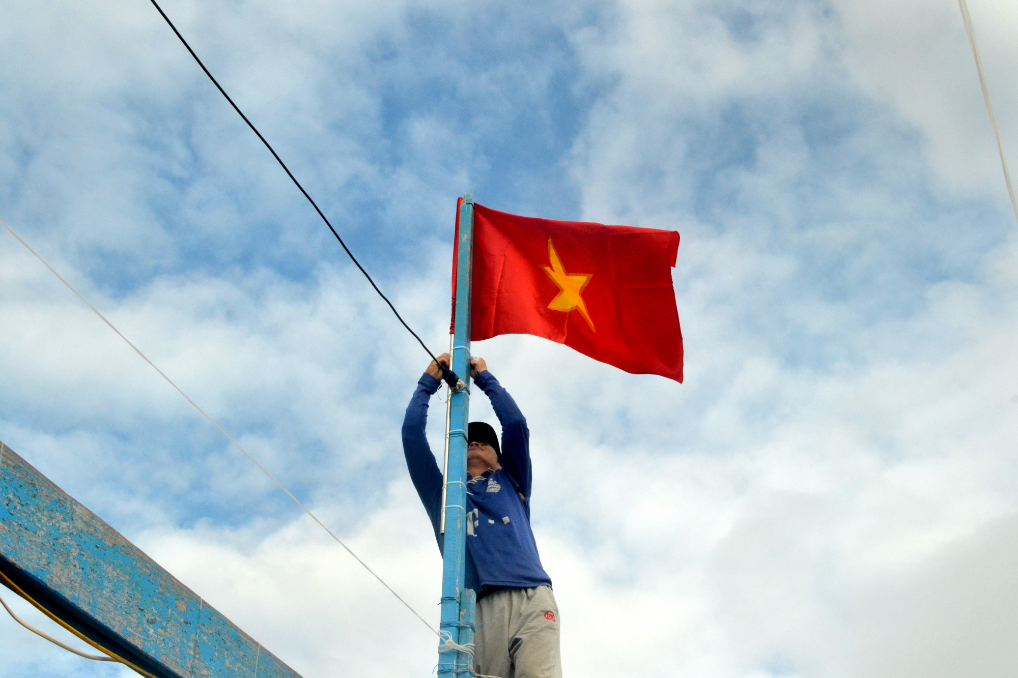 Cờ Tổ quốc mới được ngư dân treo ngay trên tàu cá của mình, chuẩn bị cho các chuyến đánh bắt sắp tới