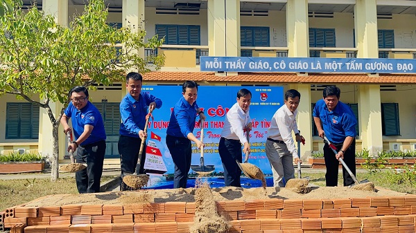Kết thúc chương trình, các đồng chí Lãnh đạo đã tham dự và thực hiện nghi thức khởi công xây dựng Công trình thanh niên "Mô hình cột mốc Trường Sa" (Trường Sa trong trái tim tôi) tại trường THPT Lê Hồng Phong.