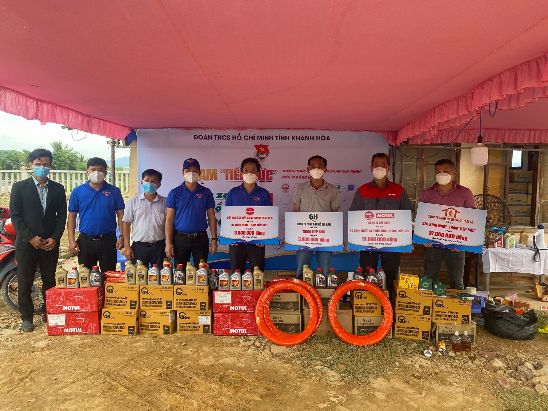 Lãnh đạo Tỉnh đoàn trao tặng cùng các mạnh thường quân trao hỗ trợ cho Thành đoàn Cam Ranh thực hiện kiểm tra, sửa chữa phương tiện cho người dân