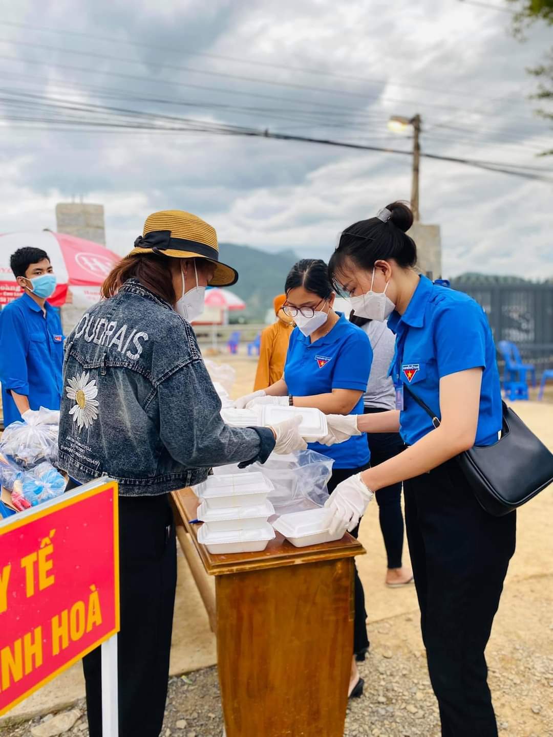 Tình nguyện viên phát cơm cho người dân trên đường về quê