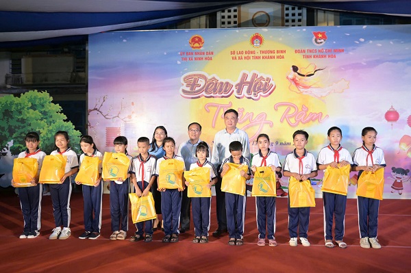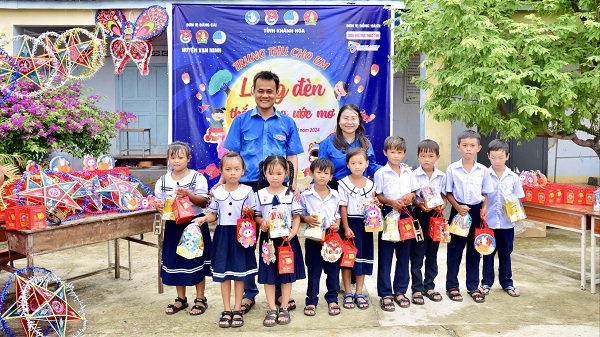Đặc biệt, với mong muốn mang Trung thu và tiếng cười đến với các em thiếu nhi vùng khó khăn, vùng biên giới, hải đảo của. Tỉnh đoàn, Hội Đồng đội tỉnh đã trao hơn 320 xuất quà (gồm bánh trung thu, sữa, bánh kẹo, lồng đèn,…) đến các em thiếu nhi tại xã đảo Điệp Sơn của Huyện Vạn Ninh (ngày 14/9); xã đảo Ninh Vân - TX Ninh Hòa (ngày 16/9) và thiếu nhi là con em ngư dân tại Phường Cam Lợi - TP Cam Ranh (ngày 17/9).