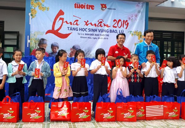 Trong đợt này, Tỉnh đoàn - Hội đồng Đội tỉnh Khánh Hòa đã phối hợp với Báo Tuổi Trẻ trao tặng 500 phần quà Tết cho 500 em học sinh thuộc 05 trường tiểu học và THCS của các xã Phước Đồng (Tp. Nha Trang), xã Suối Cát (huyện Cam Lâm) và xã Ba Cụm Bắc (huyện Khánh Sơn). Mỗi phần quà trị giá 500 nghìn đồng, trong đó bao gồm 200 nghìn đồng tiền mặt và phần quà Tết trị giá 300 nghìn đồng. Tổng kinh phí quà tặng là 250 triệu đồng.
