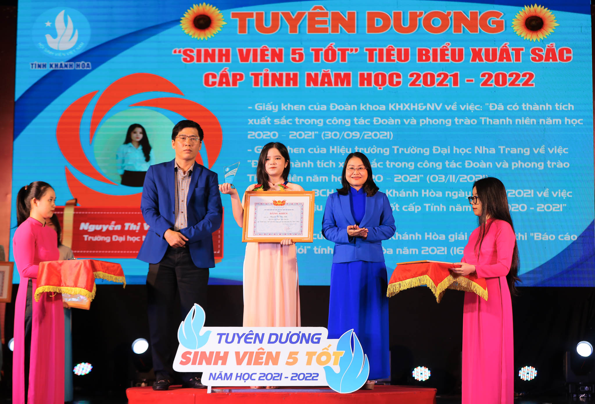 ĐTN: Sáng 08/01, Tỉnh đoàn –Hội Sinh viên Việt Nam tỉnh Khánh Hòa tổ chức Hội thi biểu diễn nghệ thuật “Tự hào học sinh, sinh viên Khánh Hòa”, mừng Đảng – mừng Xuân Quý Mão 2023 và kỷ niệm 73 năm Ngày truyền thống học sinh, sinh viên và Hội Sinh viên Việt Nam (09/01/1950 – 09/01/2023); Tuyên dương “Sinh viên 5 Tốt”, tập thể “Sinh viên 5 Tốt” cấp tỉnh năm học 2021 – 2022.