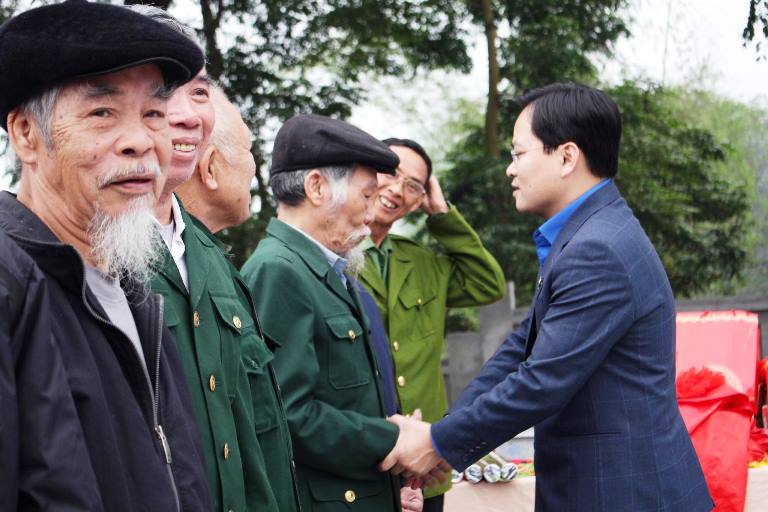 Bí thư thứ nhất Trung ương Đoàn Nguyễn Anh Tuấn ân cần thăm hỏi các gia đình chính sách tại địa phương