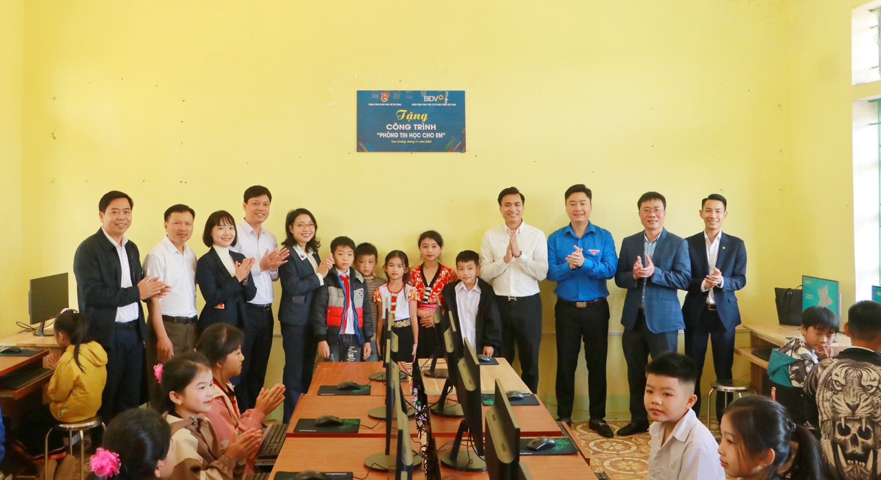 Nằm trong chuỗi chương trình “Sóng và máy tính cho em”, sáng ngày 19/11/2023, Trung ương Đoàn và BIDV đã thực hiện nghi thức khánh thành và bàn giao “Phòng tin học cho em” với 25 máy tính tại trường tiểu học Thạch Ngàn, xã Thạch Ngàn, huyện Con Cuông, tỉnh Nghệ An.