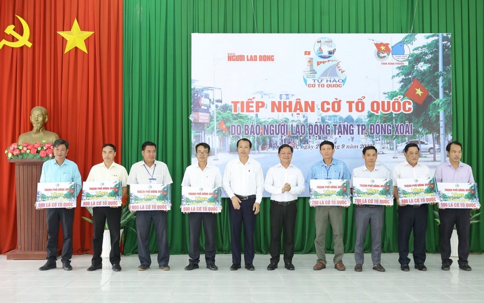 Tại chương trình, đồng chí Hà Anh Dũng - Uỷ viên Ban Thường vụ Tỉnh uỷ, Bí thư Thành uỷ Đồng Xoài và đồng chí Trần Hoàng Trực - Bí thư Tỉnh Đoàn Bình Phước đã tiếp nhận bảng tượng trưng 5.000 lá cờ Tổ quốc và cờ biểu trưng do Nhà báo Tô Đình Tuân - Bí thư Đảng ủy, Tổng Biên tập Báo Người Lao Động trao tặng. Đồng thời, Thành uỷ - UBND thành phố Đồng Xoài đã trao tặng những lá cờ Tổ quốc cho UBND các xã, phường trên địa bàn thành phố.