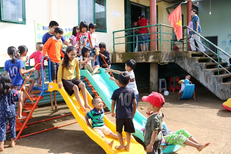 Trước đó, cô trò tại bon N’Jang Bơ, xã Trường Xuân, huyện Đắk Song phải học nhờ tại nhà văn hóa bon, điều kiện dạy và học rất khó khăn, vất vả. Chia sẻ với khó khăn, vất vả đó, Ban Thường vụ Tỉnh đoàn, Hội đồng Đội tỉnh Đắk Nông, Nhóm Thiện nguyện TP. Hồ Chí Minh và các nhà hảo tâm đã quyết định hỗ trợ đầu tư xây dựng điểm trường mầm non mới tại bon.