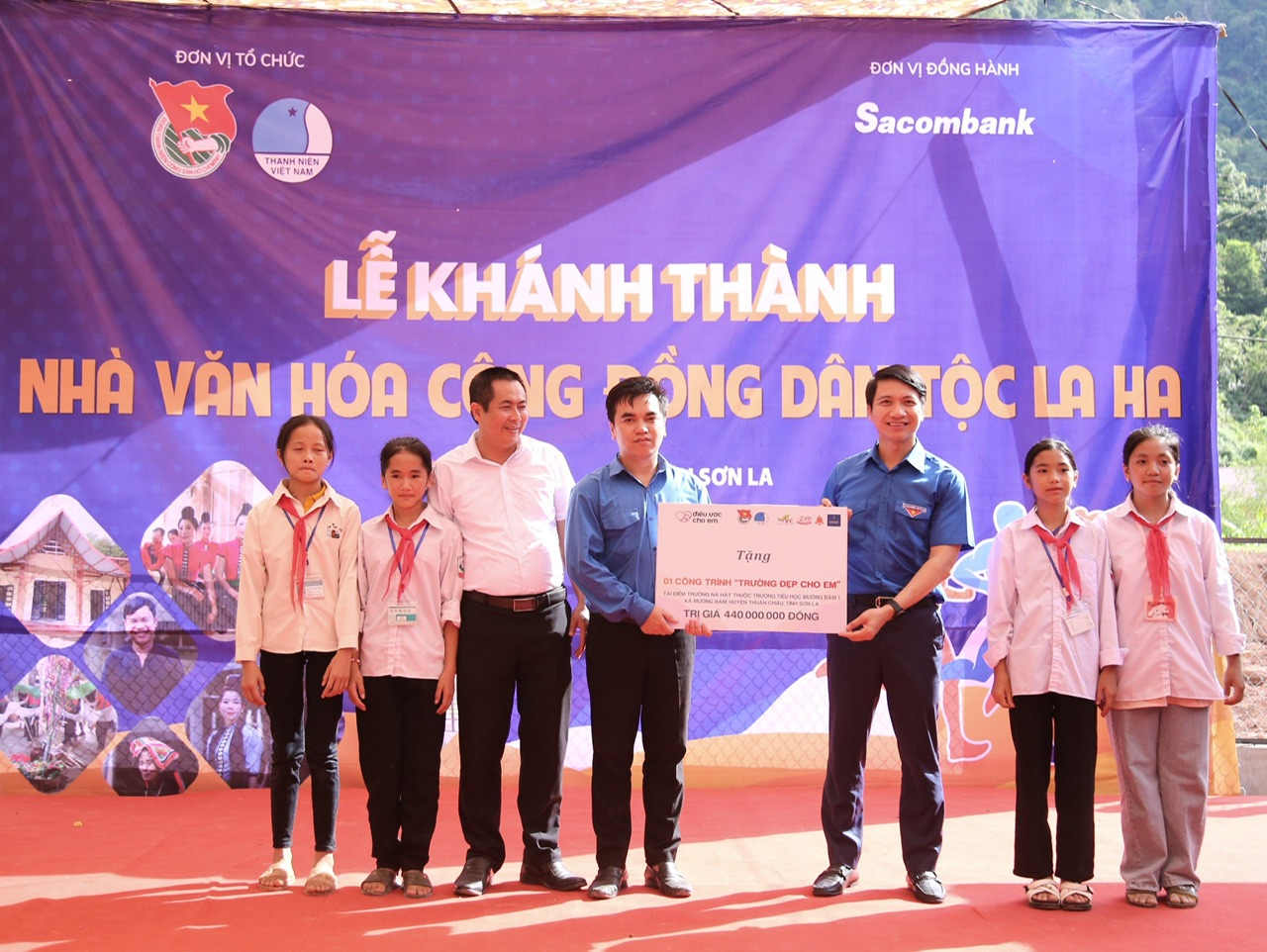 Đồng thời, trao biển tượng trưng hỗ trợ xây dựng 07 công trình “Trường đẹp cho em”; 03 công trình “Ngôi Nhà Hạnh Phúc” cho trẻ em mồ côi có hoàn cảnh khó khăn; 01 công trình “Sân chơi thiếu nhi”; hỗ trợ trang thiết bị cho Nhà Văn hóa Cộng đồng dân tộc La Ha và khởi công 01 công trình “Trường đẹp cho em” tại điểm trường Tiểu học Mường Bám 1, huyện Thuận Châu với tổng trị giá hơn 2,4 tỷ đồng.