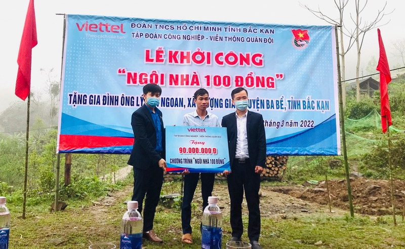Để thực hiện công trình, Ban Thường vụ Tỉnh đoàn phối hợp với Chi nhánh Kỹ thuật Viettel Bắc Kạn vận động, kêu gọi từ Đoàn thanh niên tập đoàn Công nghiệp - Viễn thông Viettel trao tặng “Ngôi nhà 100 đồng” cho gia đình ông Lý Văn Ngoan với kinh phí hỗ trợ xây dựng nhà cho gia đình là 90 triệu đồng dự kiến hoàn thành trong tháng 6/2022.