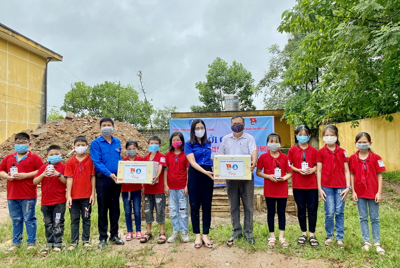 Đồng chí Phó Bí thư Tỉnh đoàn, Chủ tịch Hội đồng Đội tỉnh đã tặng các phần quà và nước rửa tay khô cho nhà trường