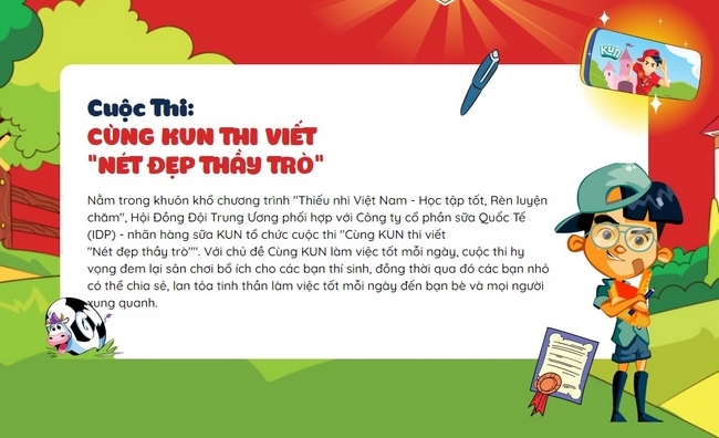 Để tham gia, các em thiếu nhi có thể viết lại (chép tay) một bài thơ trong danh mục do Ban Tổ chức đưa ra trên giấy vở học sinh hoặc giấy luyện chữ bằng bút máy hoặc bút luyện chữ; hoặc viết cảm nhận, tâm sự, cảm xúc, suy nghĩ của mình về kỷ niệm đối với thầy, cô giáo và mái trường mến yêu, kèm theo những lời chúc ý nghĩa.