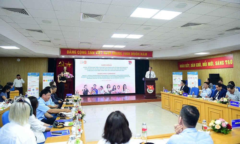 Trong khuôn khổ chương trình Quốc gia lần thứ 10 của Quỹ Dân số Liên hợp quốc giai đoạn 2022 - 2026, sáng 24/7, T.Ư Đoàn, Quỹ Dân số Liên hợp quốc khởi động Dự án VNM10P07 “Hỗ trợ phát triển toàn diện thanh niên về chăm sóc sức khỏe sinh sản, sức khỏe tình dục và đáp ứng với già hóa dân số nhằm góp phần thực hiện thành công Chiến lược phát triển thanh niên Việt Nam giai đoạn 2021 - 2030”.