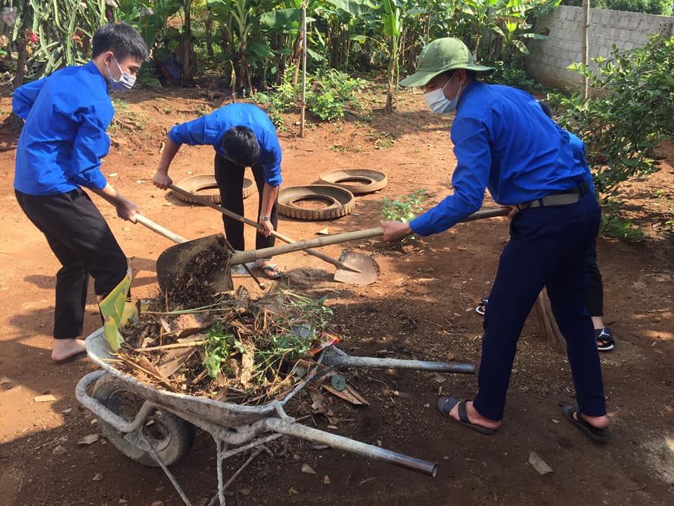 Ngoài việc nấu những “Bữa cơm tri ân”, các bạn ĐVTN còn giúp gia đình dọn dẹp sửa sang lại nhà cửa, cuốc đất, làm vườn,… Ảnh: Huyện đoàn Nghĩa Đàn