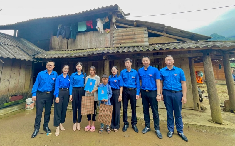 Ngay sau buổi làm việc, đoàn công tác cùng đại diện các tỉnh đoàn Cụm Tây Bắc bộ đã tới thăm, tặng quà thiếu nhi có hoàn cảnh khó khăn tại xã San Thàng và xã Sùng Phài, TP. Lai Châu.
