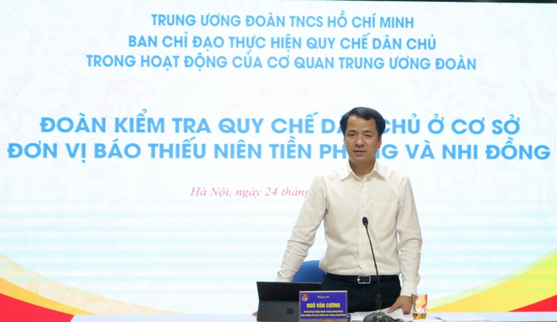 Đồng chí Ngô Văn Cương - Bí thư T.Ư Đoàn, Chủ nhiệm UBKT Trung ương Đoàn, Phó Trưởng Ban Chỉ đạo thực hiện Quy chế dân chủ trong hoạt động của cơ quan Trung ương Đoàn, Trưởng đoàn kiểm tra chủ trì buổi làm việc.