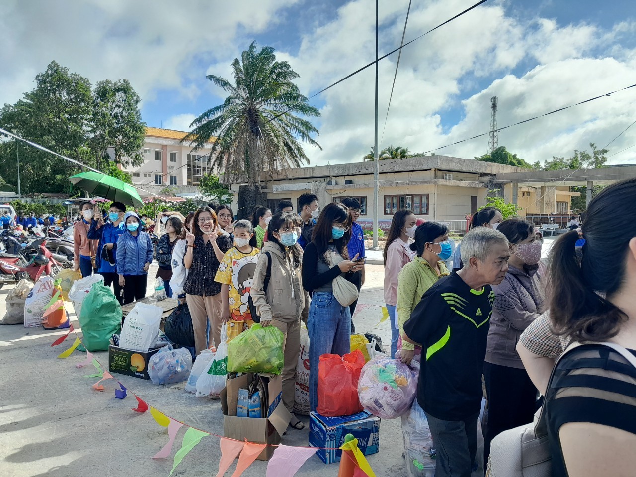 Các bạn đoàn viên và người dân xếp hàng tham gia Mô hình đổi chất thải rắn nhận quà tại Ngày hội Sống xanh năm 2023