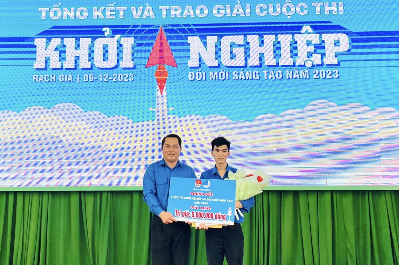 Nhân dịp này, Tỉnh đoàn cũng trao 01 giải nhất, 01 giải nhì, 01 giải ba và 10 giải khuyến khích Cuộc thi “Sáng tạo trẻ” năm 2023 được tổ chức vào ngày 7/12/2023 với sự tham gia của 13 đề tài được chọn lữa từ 48 đề tài tham gia vòng bán kết. Đề tài "Viên nén tái tạo - Hiệp đồng từ đất biển Kiên Giang" của Nhóm các bạn học sinh đến từ Trường THPT Chuyên Huỳnh Mẫn Đạt, Trường THCS Nguyễn Du và Trường THCS, THPT Võ Văn Kiệt xuất sắc đạt giải nhất.