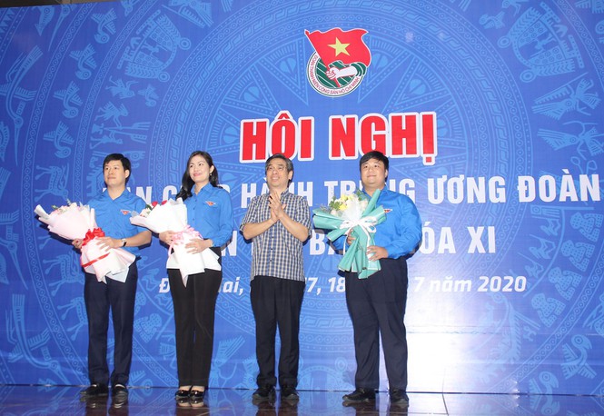 Phó Trưởng Ban Dân vận T.Ư Nguyễn Phước Lộc tặng hoa chúc mừng các tân ủy viên thường vụ T.Ư Đoàn