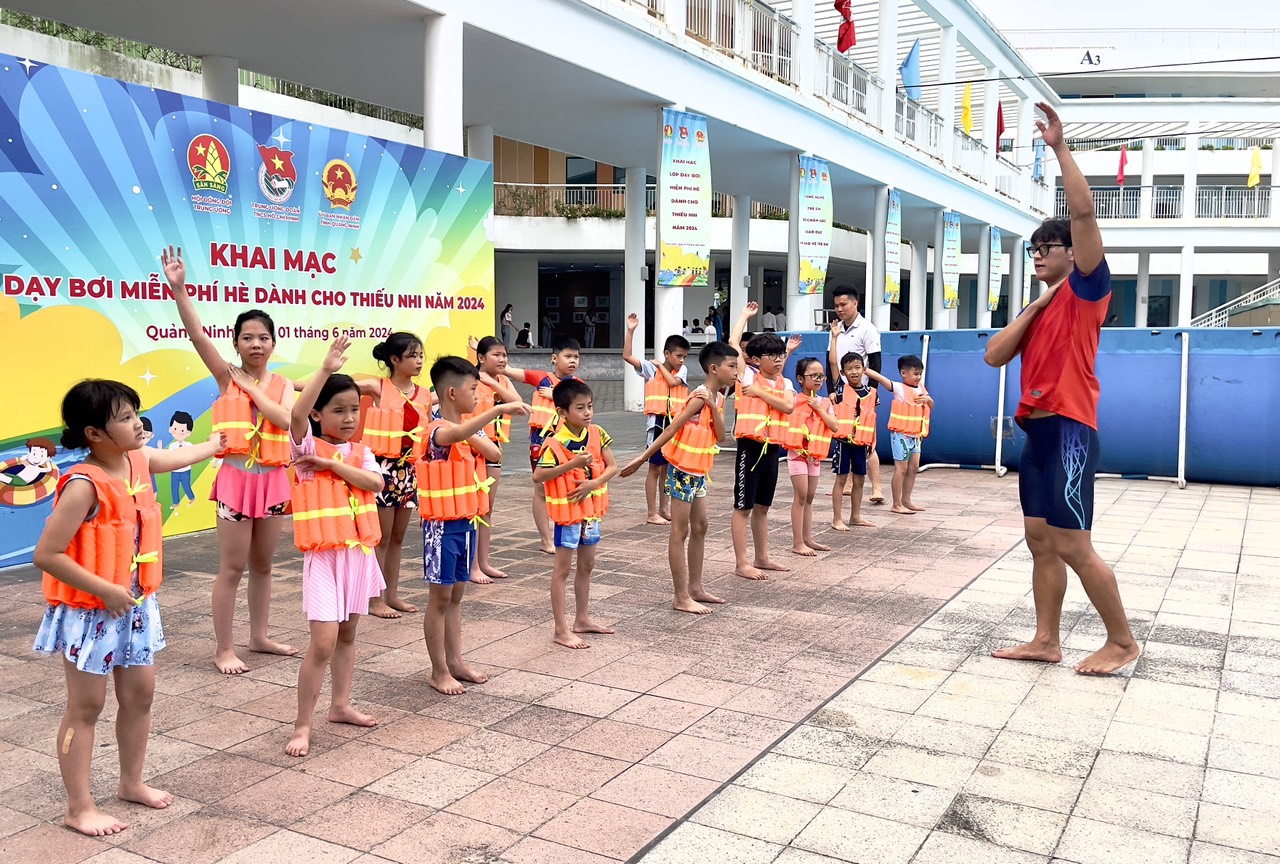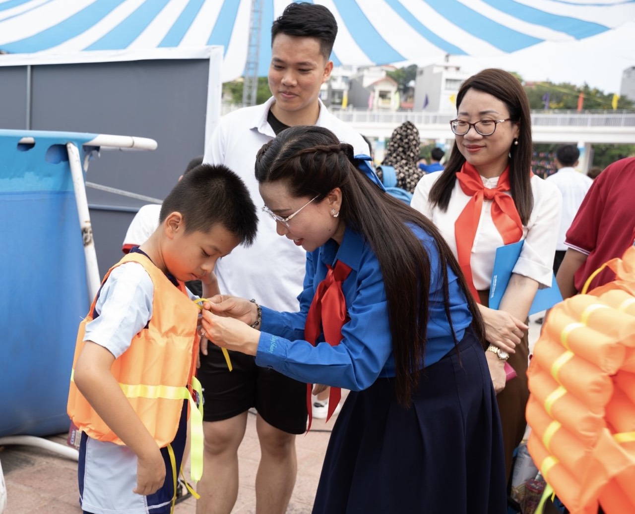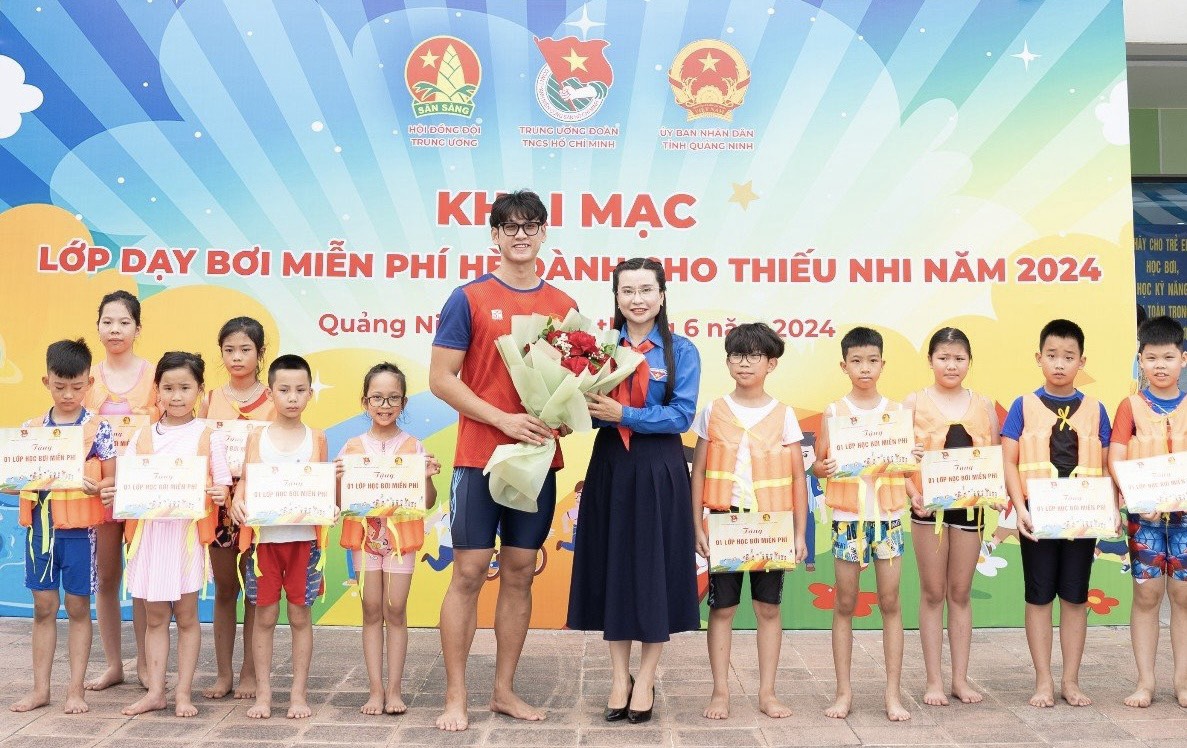 Trong khuôn khổ Chương trình Khai mạc hè, hưởng ứng Tháng hành động vì trẻ em năm 2024 tại Quảng Ninh, T.Ư Đoàn, Hội đồng Đội T.Ư đã tổ chức Khai mạc lớp dạy bơi miễn phí cho thiếu nhi hè năm 2024 và trao tặng tủ sách thiếu nhi.