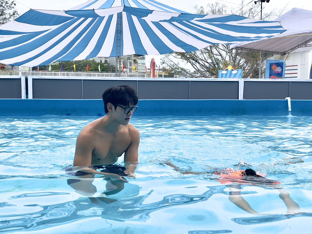 Đặc biệt, các em được vận động viên bơi lội Hoàng Quý Phước hướng dẫn kỹ thuật bơi và các kỹ năng sơ cứu, phòng chống đuối nước.