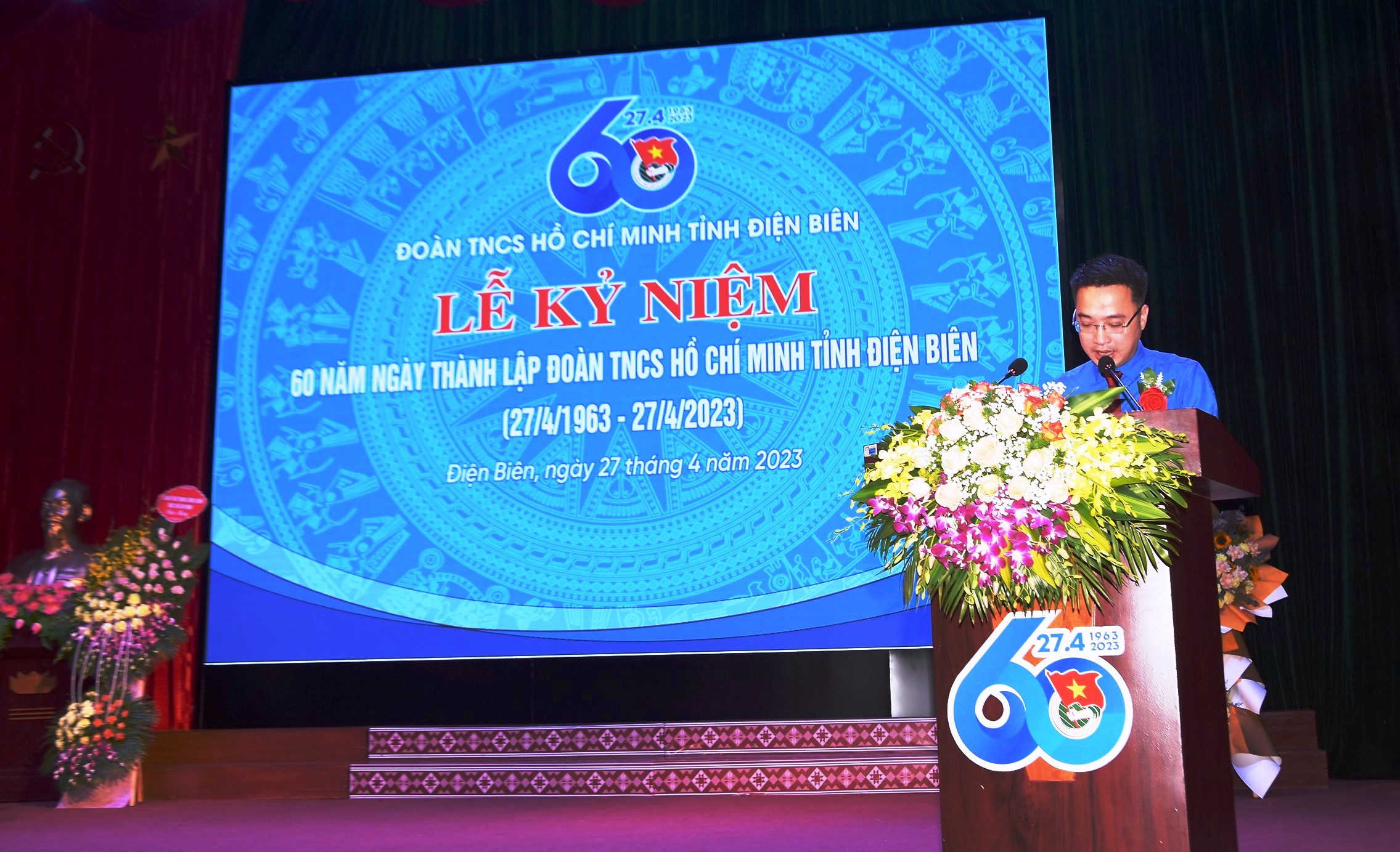 Tại buổi lễ, đồng chí Đặng Thành Huy- Bí thư Tỉnh đoàn Điện Biên và toàn thể đại biểu đã cùng ôn lại truyền thống 60 năm hình thành và phát triển của Đoàn TNCS Hồ Chí Minh tỉnh Điện Biên.