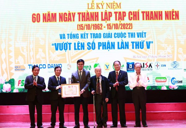 Đồng chí Bùi Quang Huy tặng Bằng khen của Trung ương Đoàn cho Tạp chí thanh niên tại lễ kỷ niệm