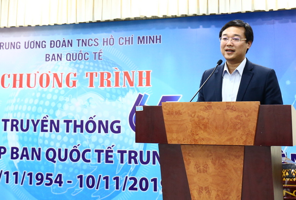 Phát biểu tại lễ kỷ niệm, đồng chí Lê Quốc Phong, Ủy viên dự khuyết BCH TƯ Đảng, Bí thư thứ nhất TƯ Đoàn; Chủ tịch Hội LHTN Việt Nam biểu dương, ghi nhận những đóng góp to lớn, liên tục của Ban Quốc tế TƯ Đoàn và các thế hệ làm công tác quốc tế thanh niên trong suốt thời gian qua; đồng thời khẳng định những kết quả nổi bật của công tác quốc tế thanh niên đã góp phần tích cực vào sự phát triển của tổ chức Đoàn TNCS Hồ Chí Minh và thành công chung trong công tác đối ngoại nhân dân của Đảng Cộng sản Việt Nam.