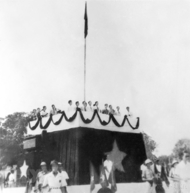 Ngày 2/9/1945, tại Quảng trường Ba Đình, Hà Nội, Chủ tịch Hồ Chí Minh đọc Tuyên ngôn Độc lập, tuyên bố sự ra đời của nước Việt Nam Dân chủ Cộng hòa. (Ảnh: Tư liệu TTXVN)