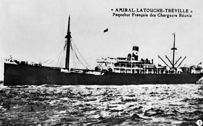 Ảnh chụp chiếc tàu Latouche Treville đã đưa người thanh niên yêu nước Nguyễn Tất Thành ra đi tìm đường cứu nước từ bến cảng Nhà Rồng ngày 5/6/1911. (Ảnh: TTXVN)