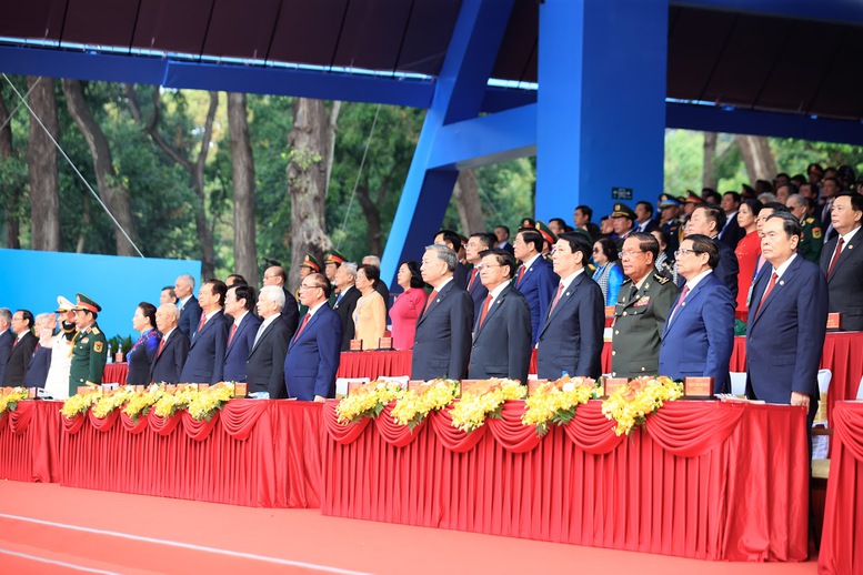 Đến dự Lễ kỷ niệm có các đoàn khách quốc tế cấp cao: Đoàn đại biểu cấp cao Đảng, Nhà nước Cộng hòa Dân chủ Nhân dân Lào do đồng chí Thongloun Sisoulith, Tổng Bí thư Đảng Nhân dân Cách mạng Lào, Chủ tịch nước Cộng hòa Dân chủ Nhân dân Lào làm Trưởng đoàn; Đoàn đại biểu cấp cao của Vương quốc Campuchia do ngài Samdech Techo Hun Sen, Chủ tịch Đảng Nhân dân Campuchia, Chủ tịch Thượng viện Vương quốc Campuchia làm Trưởng đoàn; Đoàn đại biểu Đảng, Nhà nước Cộng hòa Cuba do đồng chí Salvador Valdes Mesa, Phó Chủ tịch nước Cộng hòa Cuba làm Trưởng đoàn; Đoàn đại biểu Cộng hòa Belarus do ngài Ipatau Vadzim, Phó Chủ tịch Hạ viện Cộng hòa Belarus làm Trưởng đoàn; Đoàn đại biểu của Đảng, Nhà nước Cộng hòa Nhân dân Trung Hoa do đồng chí Bùi Kim Giai, Bộ trưởng Bộ các vấn đề quân nhân xuất ngũ làm Trưởng đoàn; các Bộ trưởng, Thứ trưởng Bộ Ngoại giao, Bộ Quốc phòng các nước, các chính đảng, các tổ chức quốc tế, Đại sứ, Trưởng cơ quan đại diện, tùy viên quốc phòng của các nước tại Việt Nam và đông đảo bạn bè quốc tế từng ủng hộ Việt Nam trong sự nghiệp đấu tranh, giải phóng dân tộc và xây dựng đất nước.