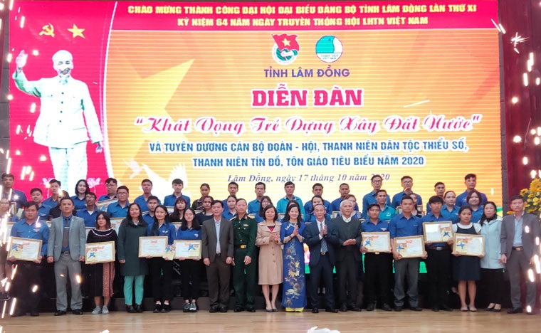 Dịp này, Ban Thường vụ Tỉnh đoàn – Ban Thư ký Ủy ban Hội LHTN Việt Nam tỉnh Lâm Đồng cũng đã tặng Bằng khen, khen thưởng, biểu dương 90 gương cán bộ Đoàn – Hội, thanh niên dân tộc thiếu số, tín đồ tôn giáo tiêu biểu trên địa bàn toàn tỉnh.