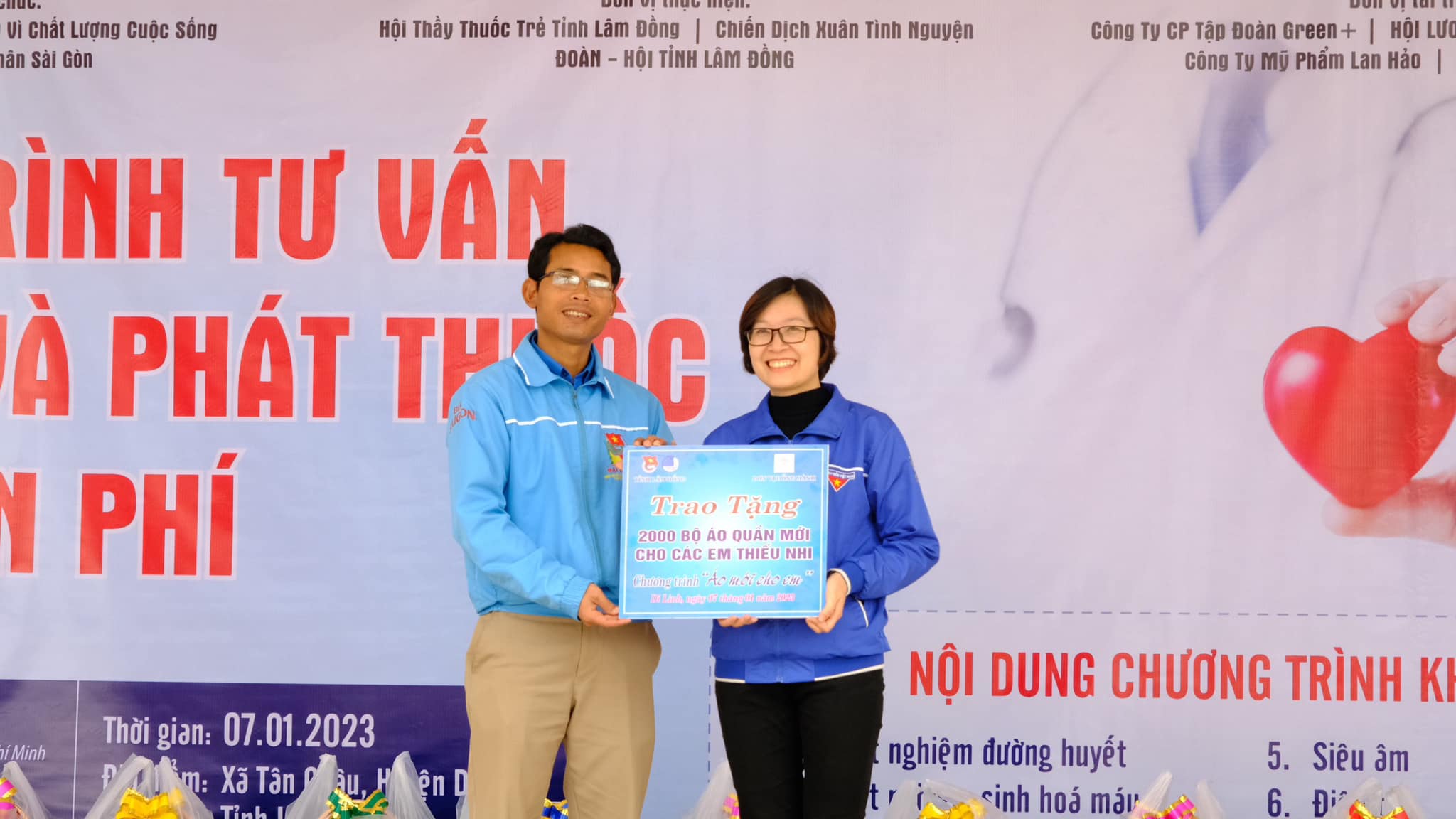 Tỉnh Đoàn - Hội LHTN Việt Nam tỉnh vừa phối hợp với Trường Đại học Y Dược TP. Hồ Chí Minh, Hội Lương thực thực phẩm TP.Hồ Chí Minh, Hội Thiện nguyện Tâm An, Farahs Home, Tạp chí Doanh nhân Sài Gòn, Quỹ Vì Chất lượng Cuộc sống, Quỹ Tấm lòng Vàng, Công ty Tập đoàn Green+, Công ty Mỹ phẩm Lan Hảo, Chiến dịch xanh tình nguyện tổ chức “Chương trình Tư vấn, khám bệnh và phát thuốc miễn phí, Trao tặng quà Tết 2023” cho người dân tại xã Tân Châu, huyện Di Linh.