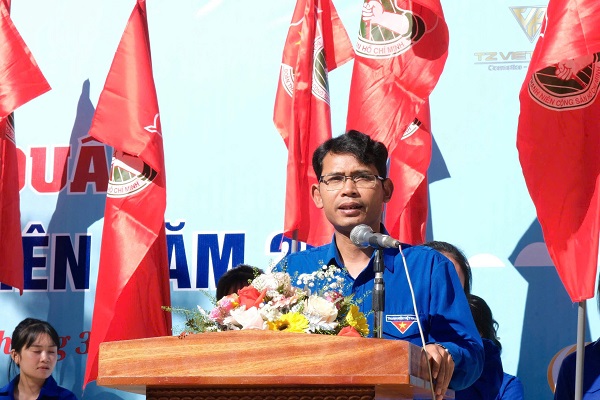 Đồng chí Ndu Ha Biên- TUV, Bí thư Tỉnh đoàn, Chủ tịch Hội LHTN Việt Nam tỉnh Lâm Đồng phát biểu tại chương trình