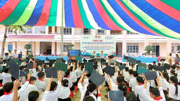 Cuộc thi được diễn ra dưới hình thức Rung chuông vàng với chủ đề: “Chúng em tiến bước lên Đoàn”. Các em đội viên tham gia trả lời câu hỏi về Nghị quyết Đại hội Đoàn các cấp trong công tác phụ trách Đội TNTP Hồ Chí Minh, Luật Trẻ em, Nghi thức Đội TNTP Hồ Chí Minh,… Ban Tổ chức đã trao 01 giải Nhất, 02 giải Nhì, 02 giải Ba, 05 giải Khuyến khích. Cuộc thi thu hút được sự tham gia của hơn 300 em đội viên.