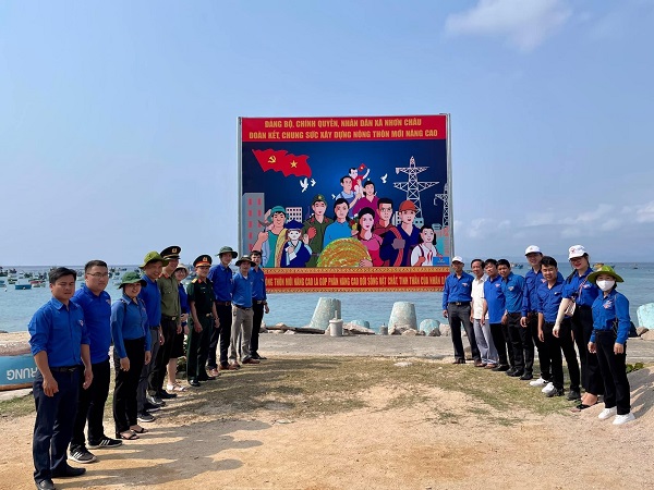 Tại xã đảo Nhơn Châu, đoàn công tác đã triển khai nhiều hoạt động như: trao tặng 1000 lá cờ Tổ quốc để thực hiện “Đường cờ thanh niên”, bàn giao công trình thanh niên “Con đường bích họa”, “Sân bóng thanh niên”, “Pano tuyên truyền bảo vệ môi trường”.