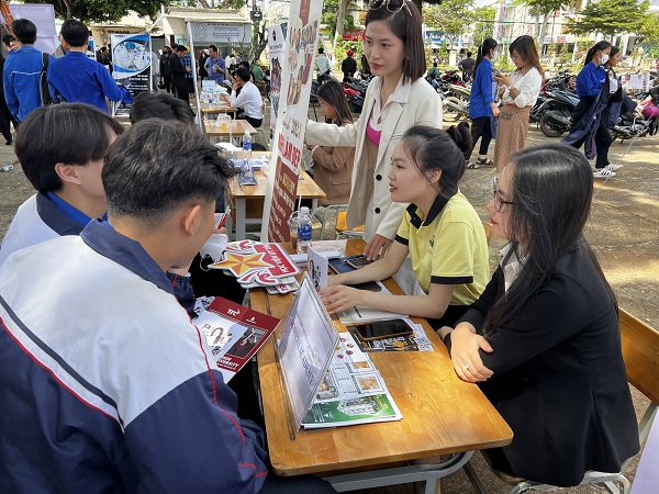 Ngay sau buổi tọa đàm, các bạn đoàn viên, thanh niên đã có cơ hội tư vấn tuyển sinh, phỏng vấn tuyển dụng với các trường Đại học, Cao đẳng và doanh nghiệp. Trong đó có hơn 2.100 chỉ tiêu tuyển dụng, 500 chỉ tiêu tuyển dụng xuất khẩu lao động; hơn 800 vị trí việc làm trong và ngoài tỉnh ở các lĩnh vực nông nghiệp, kế toán, kỹ sư…; trên 500 chỉ tiêu tuyển sinh du học tại Nhật Bản, Hàn Quốc, châu Âu và trên 300 chỉ tiêu tuyển sinh đào tạo các nghề hàn công nghệ cao, may công nghiệp, kỹ thuật nông nghiệp công nghệ cao.