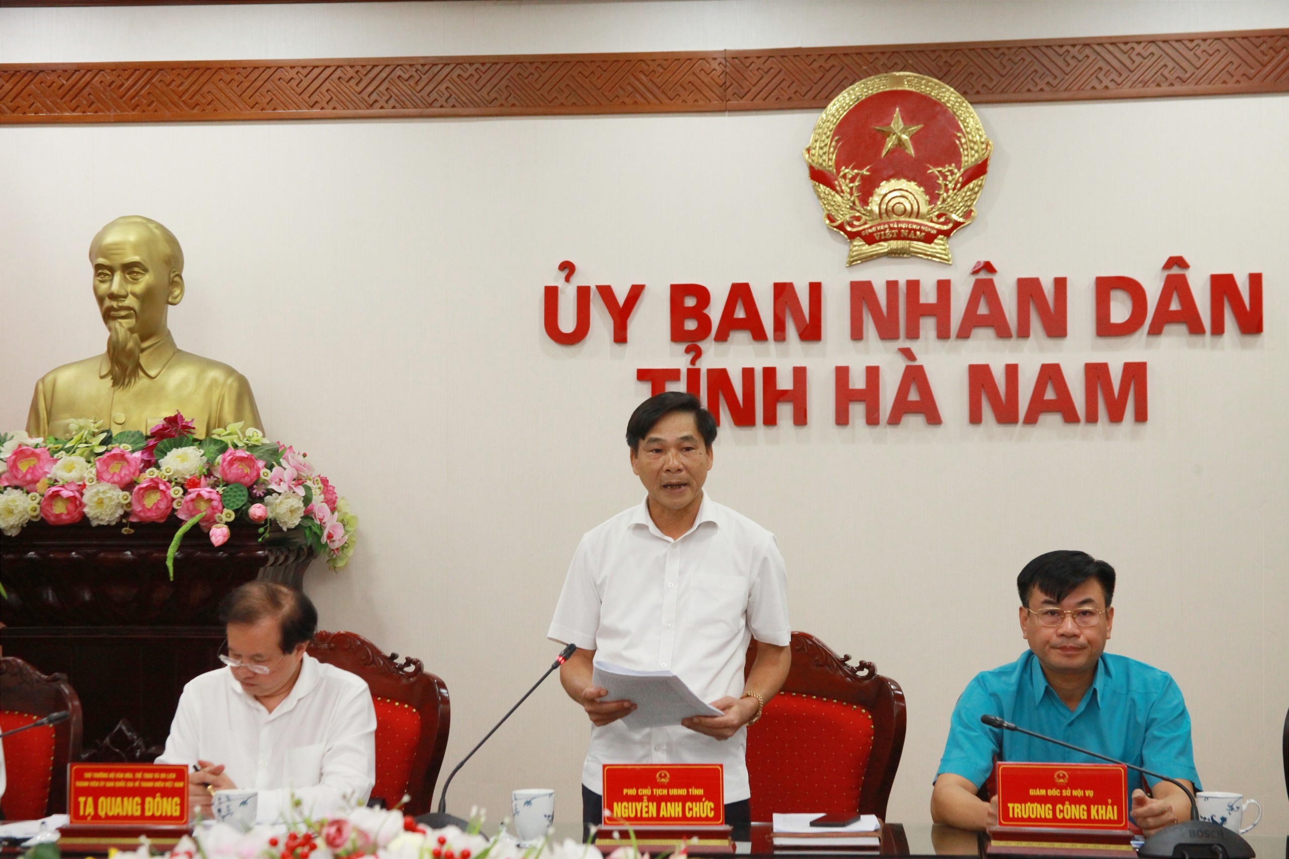 Đồng chí Tạ Quang Đông- Thứ trưởng Bộ Văn hóa Thể thao và Du lịch, thành viên UBQG về TNVN cùng đoàn công tác làm việc với UBND tỉnh Hà Nam