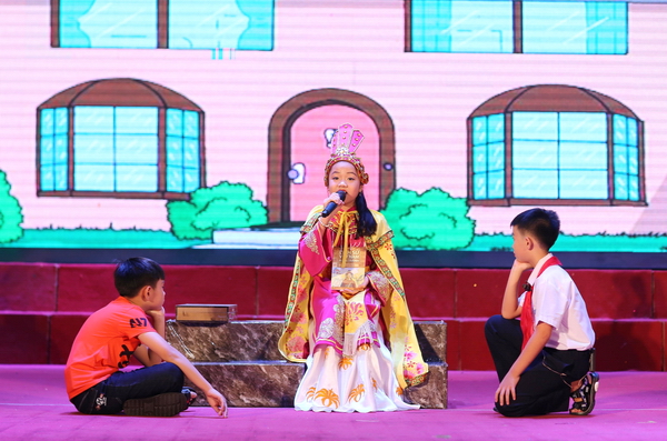 Nhiều bạn nhỏ chắc chắn sẽ thấy hào hứng khi học lịch sử sau khi xem tiểu phẩm “Học lịch sử sao cho đúng?” của Đặng Tú Thanh - trường tiểu học Hợp Đức (Hải Phòng). Hóa thân thành Nguyên Phi Ỷ Lan, Tú Thanh đã mang đến cho khán giả những giây phút hào hùng qua những câu nói đã đi vào lịch sử cùng những ca khúc được lồng ghép đã thể hiện tài năng của “nghệ sỹ hát nhạc dân tộc nhỏ tuổi nhất Việt Nam”.