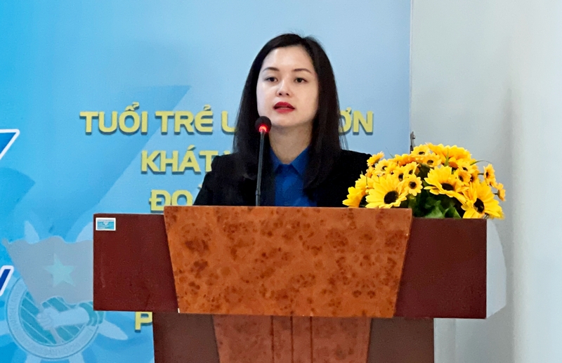 Đồng chí Đinh Thị Anh Thư - Uỷ viên BCH Trung ương Đoàn, Bí thư Tỉnh đoàn báo cáo chuyên đề tại Hội nghị