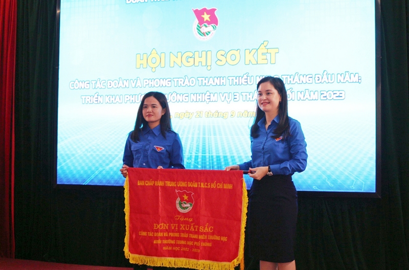 Đồng chí Đinh Thị Anh Thư, Ủy viên Ban Chấp hành Trung ương Đoàn, Bí thư Tỉnh đoàn thừa uỷ quyền trao Cờ thi đua đơn cho vị xuất sắc
