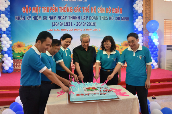 Cắt bánh sinh nhật chúc mừng 88 năm Ngày thành lập Đoàn TNCS Hồ Chí Minh