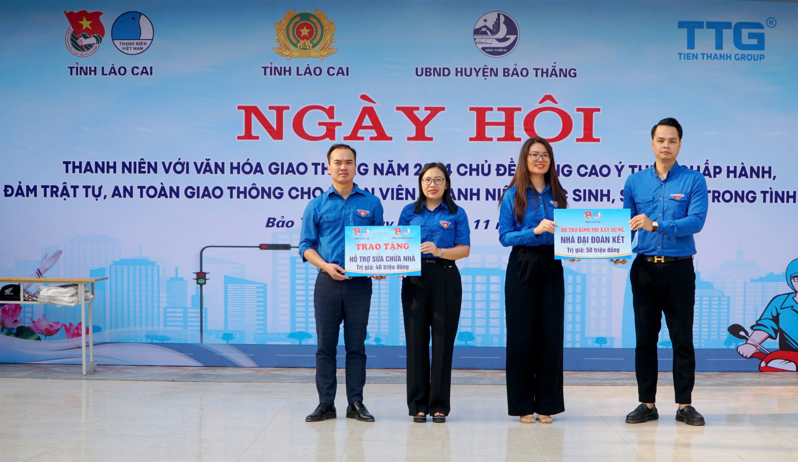 Tại chương trình, Đội thanh niên tình nguyện đảm bảo trật tự ATGT huyện Bảo Thắng lên ra mắt, trao hỗ trợ 01 nhà Đại đoàn kết (Nguồn từ quỹ vì người nghèo tỉnh Lào Cai) trị giá 50 triệu đồng cho các hộ gia đình khó khăn, hỗ trợ sửa chữa 01 nhà trị giá 40 triệu đồng (từ nguồn kinh phí hỗ trợ bão số 3 của Tỉnh đoàn Quảng Nam) cho 01 hộ gia đình Đoàn viên bị ảnh hưởng bởi bão số 3 Yagi; Tỉnh đoàn – Hội Liên hiệp Thanh niên Việt Nam tỉnh Lào Cai trao tặng 10 phần quà cho các em học sinh có hoàn cảnh khó khăn, vươn lên lên học tập; Trao giải cuộc thi tìm hiểu pháp luật về ATGT trên ứng dụng công nghệ tuần 01.