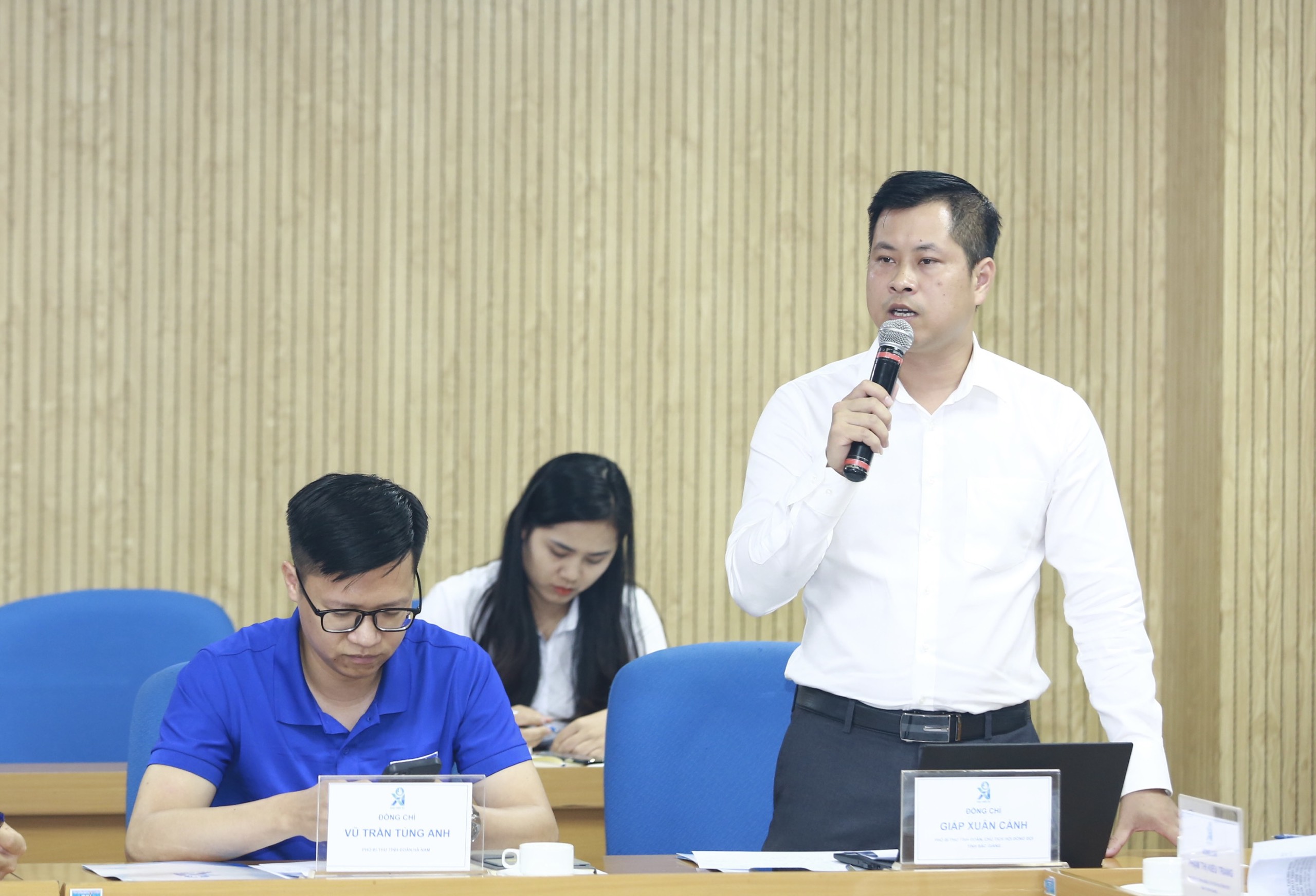 Đồng chí Giáp Xuân Cảnh, Phó Bí thư tỉnh Đoàn Bắc Giang phát biểu ý kiến tại hội nghị